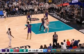 埃迪上篮后撞倒了空中的东契奇 裁判摊手表示:没犯规